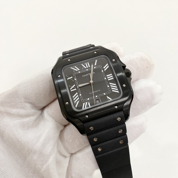 까르*에 산토스 올블랙 (다크워리어) 러버밴드 라지 47.5mm×39.8mm 1:1 최상급 (싱크 98.6%)