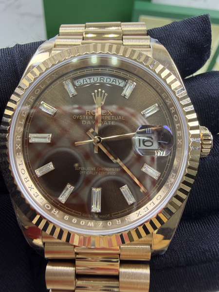롤*스 데이데이트 초코 바게트다이아 로즈골드 금통 40mm 1:1 최상급 (싱크 99.8%)