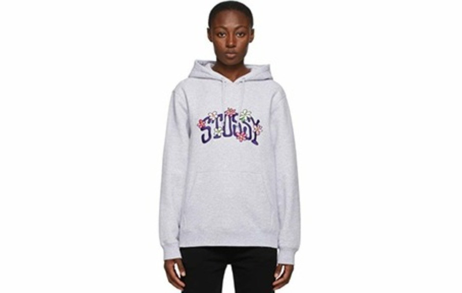 S투시 플라워 자수로고 오버사이즈 후드티셔츠 (2color) > TOP