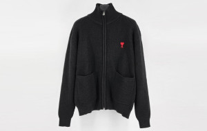 • A미 스몰레드하트 풀집업 카라 니트