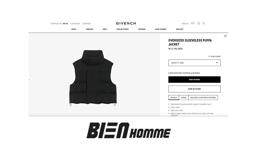 남녀공용 G방시 오버사이즈 SLEEVELESS 푸파 덕다운 베스트 (PREMIUM) 요약정보 및 구매