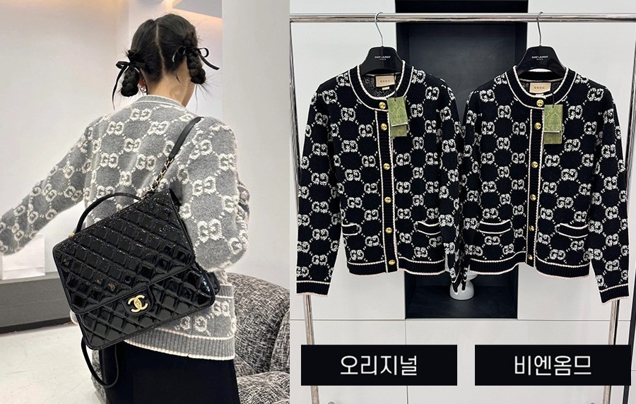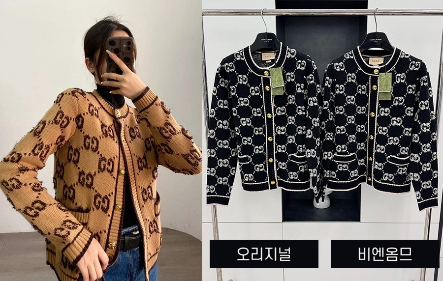 • 9찌 우먼 GG 부클레 자카드 울 가디건 (1:1 HIGH PREMIUM)