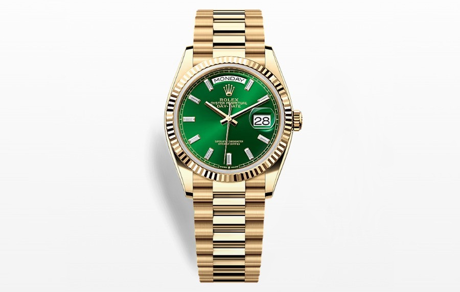 롤*스 데이데이트 녹판 바게트다이아 금통 36mm 1:1 최상급 (싱크 99.8%)