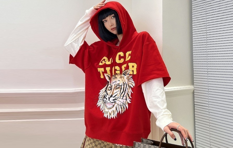 • 9찌 타이거 레드 후드 레이어 후드티셔츠 (PREMIUM)