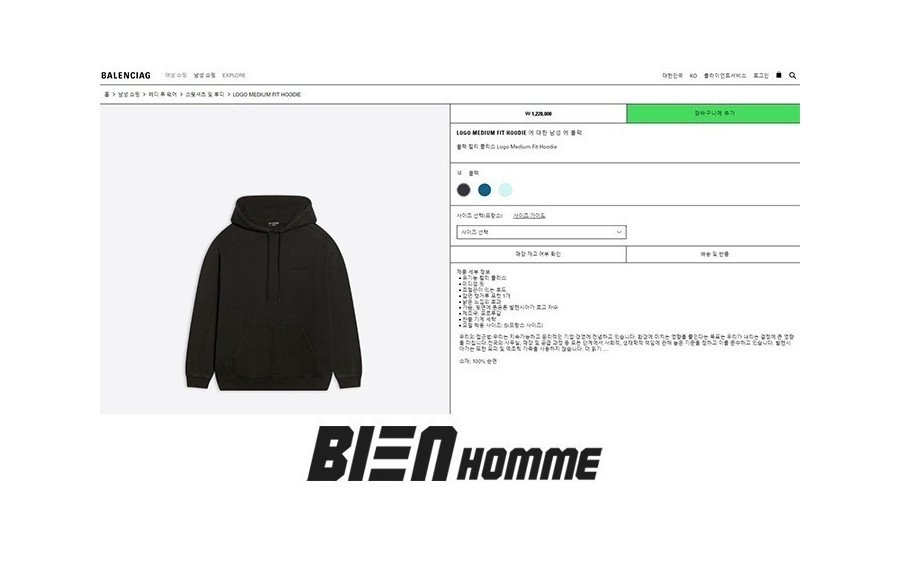 발렌시A가 빈티지 블랙 로고 후드티 (PREMIUM) 요약정보 및 구매