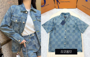 남녀공용 루이B통 다미에 3D 데님 반팔 셔츠 & 쇼츠 팬츠 (1:1 HIGH PREMIUM) 요약정보 및 구매