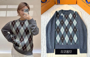 남녀공용 루이B통 LV 프레피 아가일 크루넥 니트 스웨터 (1:1 HIGH PREMIUM)