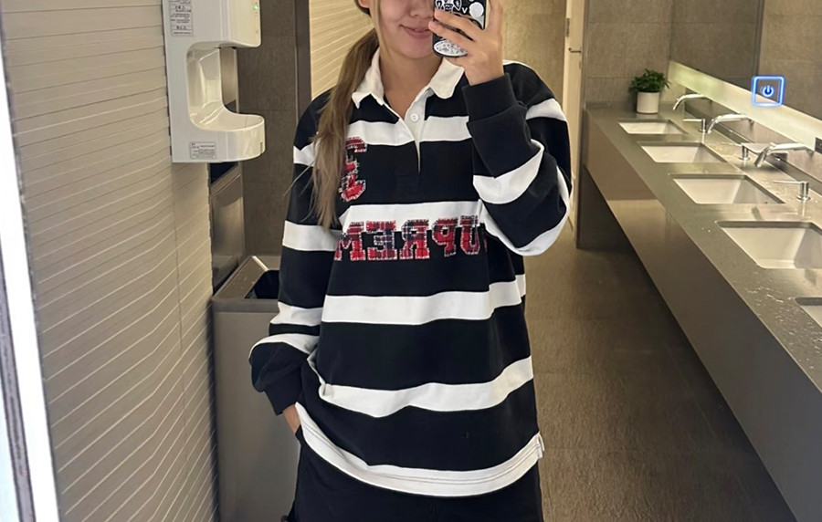 남녀공용 슈프림 스트라이프 럭비 롱슬리브 티셔츠 (PREMIUM)