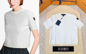 루이B통 우먼 톤온톤 모노그램 니트 반팔 티셔츠 (PREMIUM)