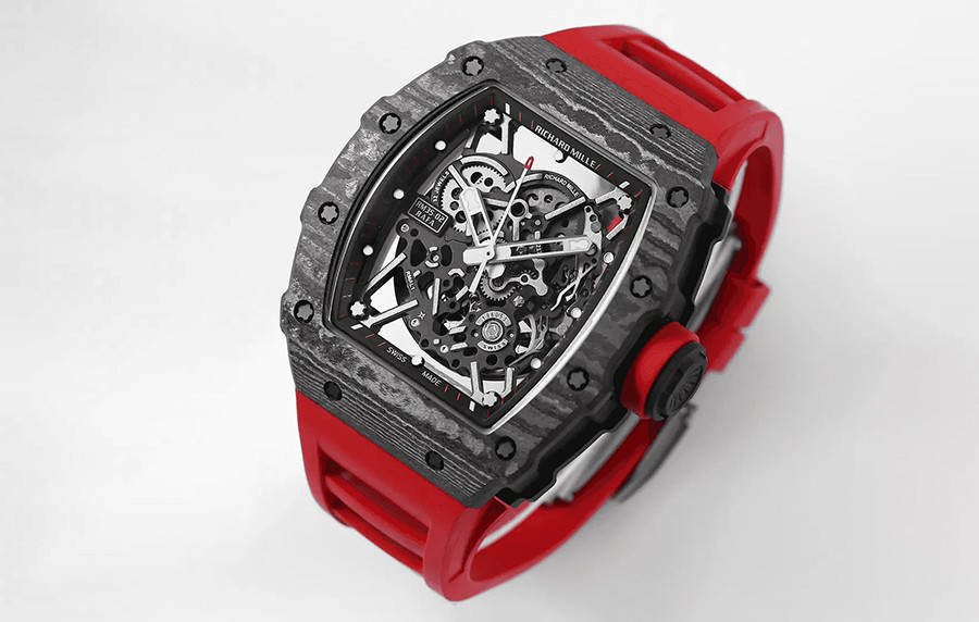 • 리차*밀 RM35-02 라파엘 나달 NTPT 카본(블랙) 레드 러버밴드 44.5mm×50mm 1:1 최상급 (싱크 99.8%)